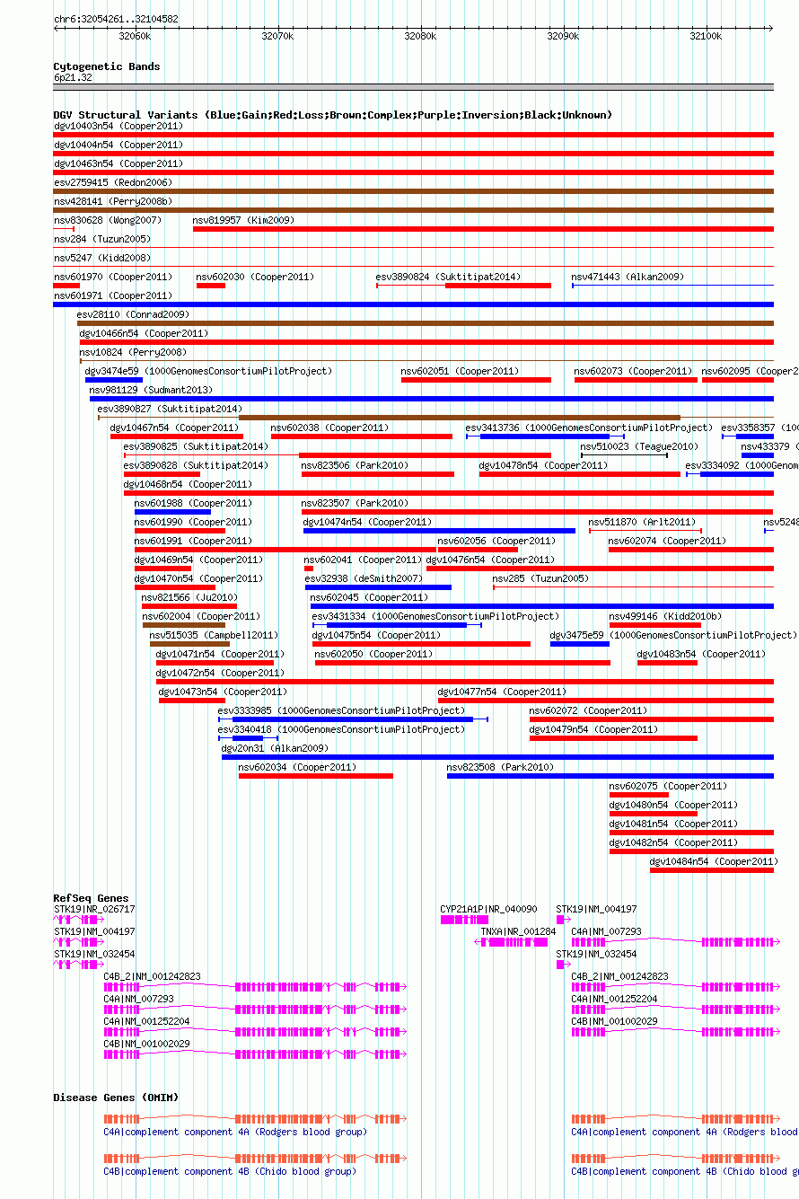 Variant DetailsVariant: essv97168 | Internal ID | 12960408 | | Landmark | | | Location Information | | | Cytoband | 6p21.32 | | Allele length | | Assembly | Allele length | | hg38 | 50316 | | hg19 | 50316 | | hg18 | 50322 | | hg17 | 50322 |