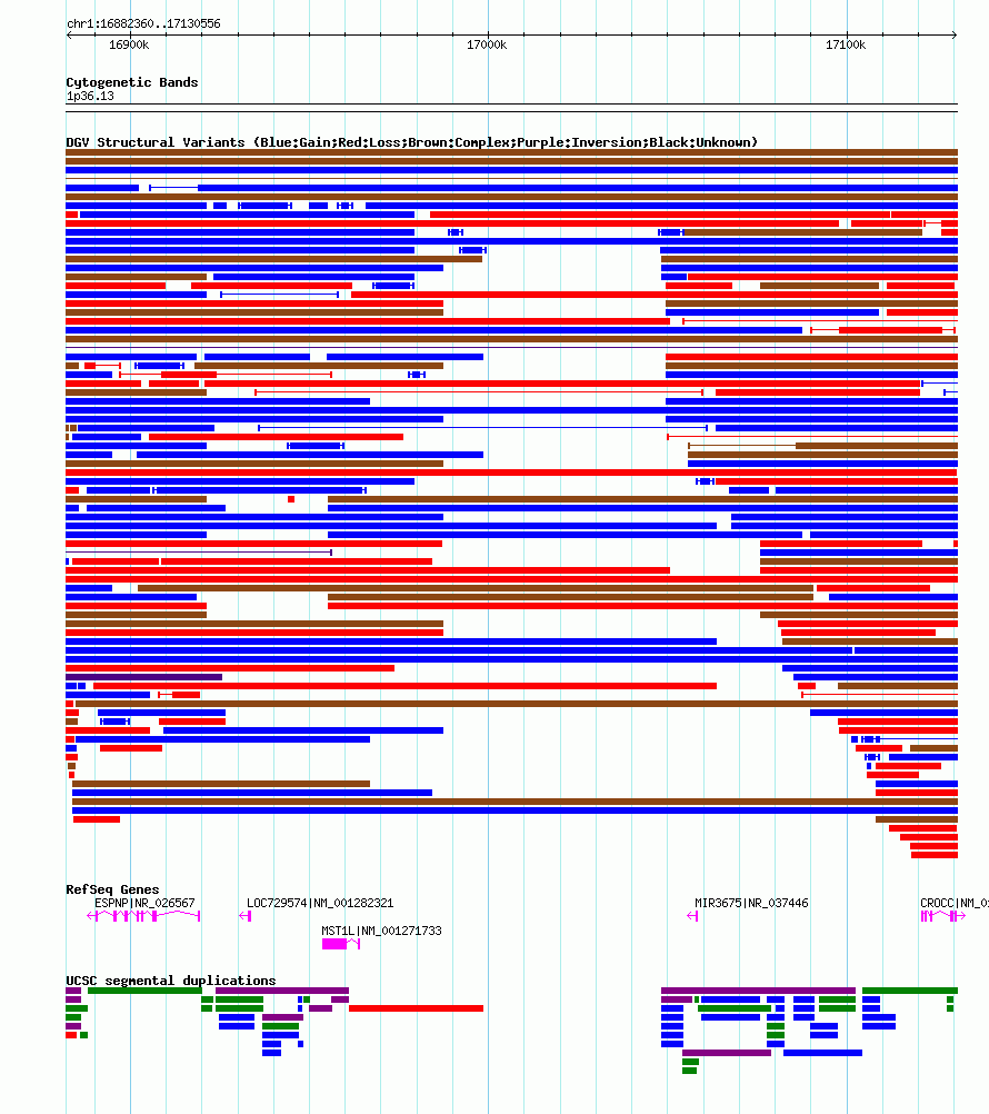 Variant DetailsVariant: essv97172 | Internal ID | 12613726 | | Landmark | | | Location Information | | | Cytoband | 1p36.13 | | Allele length | | Assembly | Allele length | | hg38 | 248197 | | hg19 | 248197 | | hg18 | 248197 | | hg17 | 248197 |
