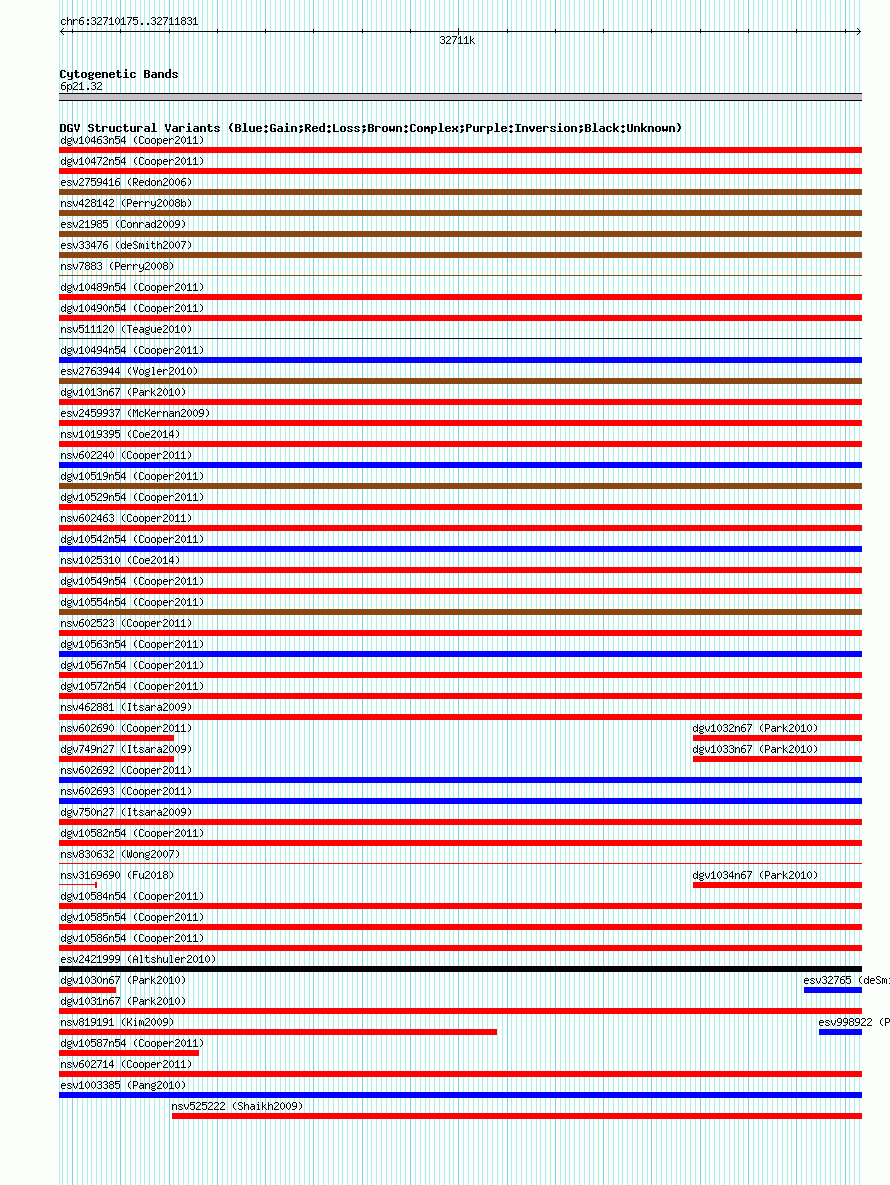 Outerchr6:32710175..32711831hg18UCSC Ensembl