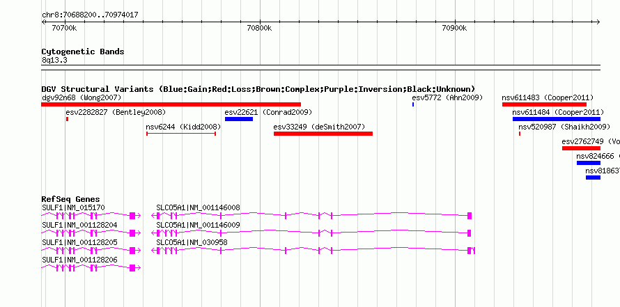 Outerchr8:70688200..70974017hg17UCSC Ensembl