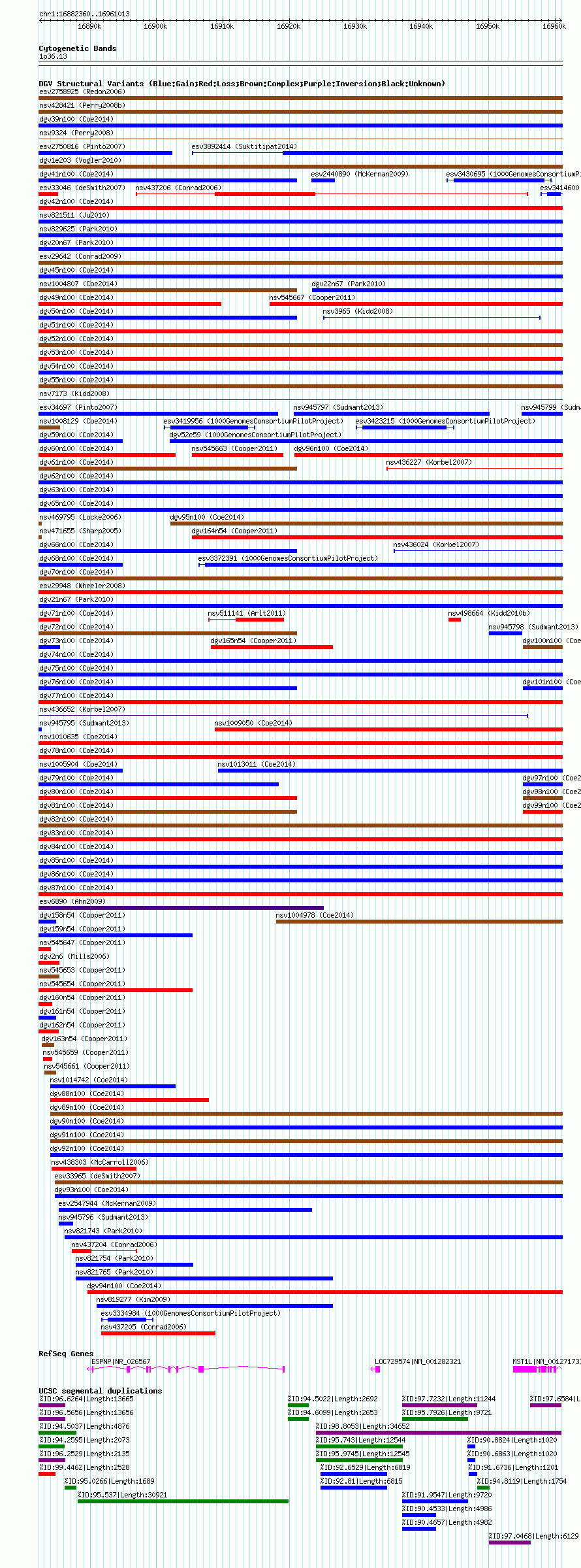 Variant DetailsVariant: essv99198 | Internal ID | 12615977 | | Landmark | | | Location Information | | | Cytoband | 1p36.13 | | Allele length | | Assembly | Allele length | | hg38 | 78654 | | hg19 | 78654 | | hg18 | 78654 | | hg17 | 78654 |