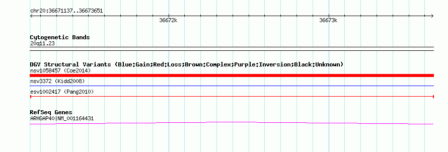 Variant DetailsVariant: esv1002417| Internal ID | 7067533 | | Landmark | | | Location Information | | | Cytoband | 20q11.23 | | Allele length | | Assembly | Allele length | | hg38 | 2515 | | hg19 | 2515 | | hg18 | 2515 |