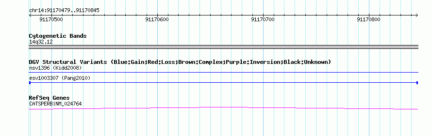 Variant DetailsVariant: esv1003307| Internal ID | 7068413 | | Landmark | | | Location Information | | | Cytoband | 14q32.12 | | Allele length | | Assembly | Allele length | | hg38 | 3544 | | hg19 | 3544 | | hg18 | 3544 |