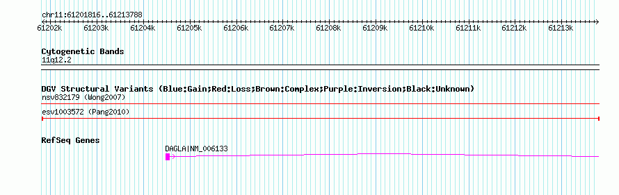 | | Variant Type | CNV deletion | | Copy Number | | | Allele State | | | Allele Origin | | | Probe Count | | | Validation Flag | | | Merged Status | M | | Merged Variants | | | Supporting Variants | essv3564710 | | Samples | HuRef | | Known Genes | DAGLA | | Method | Sequencing | | Analysis | | | Platform | Sanger Sequencing | | Comments | | | Reference | Pang_et_al_2010 | | Pubmed ID | 20482838 | | Accession Number(s) | esv1003572
