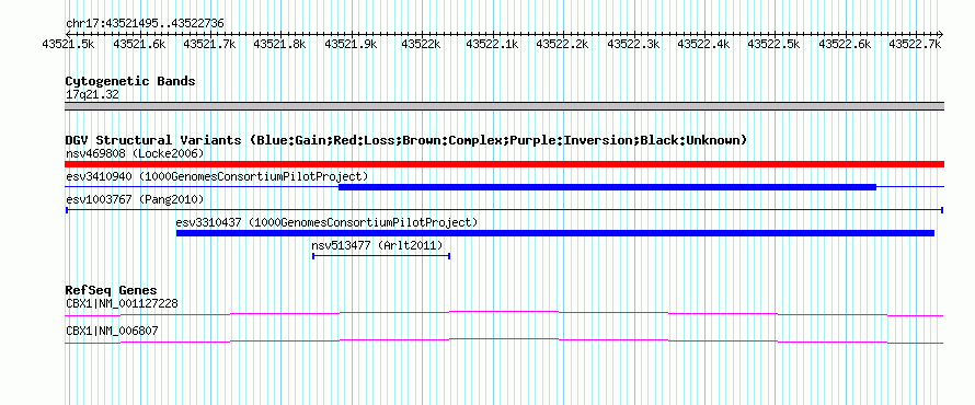 Variant DetailsVariant: esv1003767| Internal ID | 7068872 | | Landmark | | | Location Information | | | Cytoband | 17q21.32 | | Allele length | | Assembly | Allele length | | hg38 | 2290 | | hg19 | 2290 | | hg18 | 2290 |