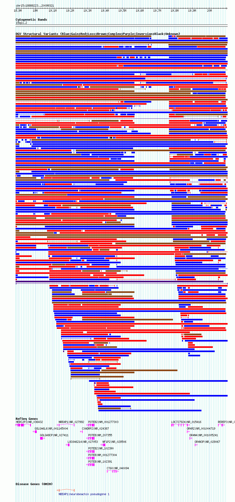 Variant DetailsVariant: esv1004259| Internal ID | 7069359 | | Landmark | | | Location Information | | | Cytoband | 15q11.1 | | Allele length | | Assembly | Allele length | | hg38 | 1885287 | | hg19 | 1967985 | | hg18 | 1211099 |