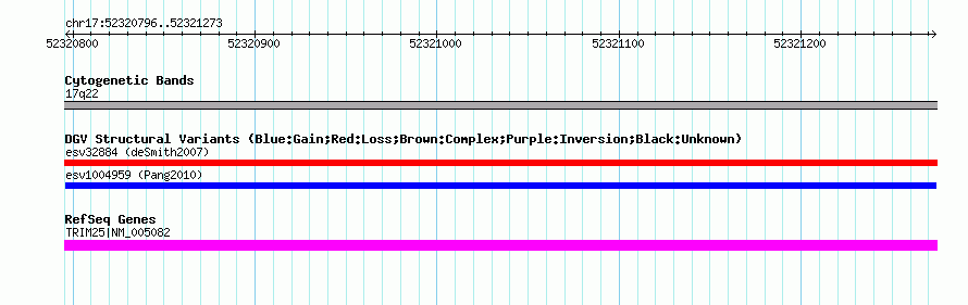 | | Variant Type | CNV gain | | Copy Number | | | Allele State | | | Allele Origin | | | Probe Count | | | Validation Flag | | | Merged Status | M | | Merged Variants | | | Supporting Variants | essv3587003 | | Samples | HuRef | | Known Genes | TRIM25 | | Method | Oligo aCGH | | Analysis | | | Platform | Not Submitted | | Comments | | | Reference | Pang_et_al_2010 | | Pubmed ID | 20482838 | | Accession Number(s) | esv1004959
