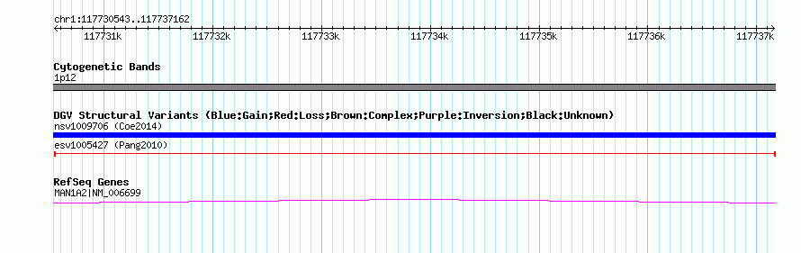 | | Variant Type | CNV deletion | | Copy Number | | | Allele State | | | Allele Origin | | | Probe Count | | | Validation Flag | | | Merged Status | M | | Merged Variants | | | Supporting Variants | essv3565039 | | Samples | HuRef | | Known Genes | MAN1A2 | | Method | Sequencing | | Analysis | | | Platform | Sanger Sequencing | | Comments | | | Reference | Pang_et_al_2010 | | Pubmed ID | 20482838 | | Accession Number(s) | esv1005427