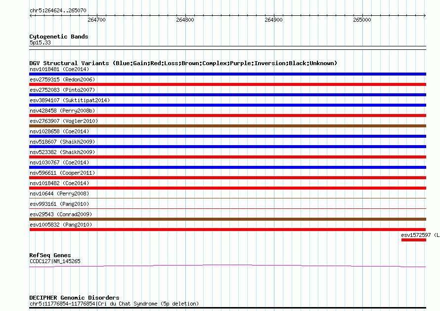 Variant DetailsVariant: esv1005832| Internal ID | 7070926 | | Landmark | | | Location Information | | | Cytoband | 5p15.33 | | Allele length | | Assembly | Allele length | | hg38 | 447 | | hg19 | 447 | | hg18 | 447 |