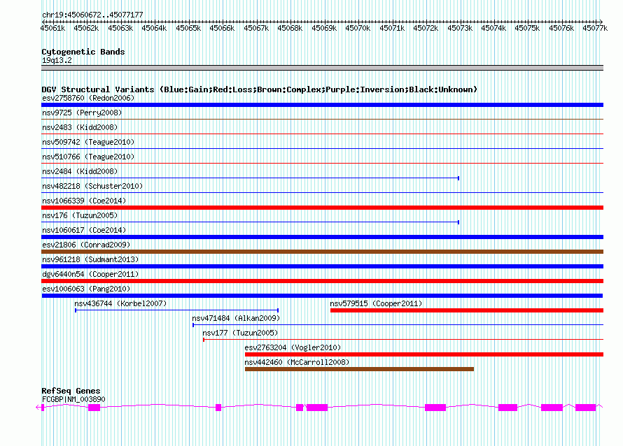 Variant DetailsVariant: esv1006063| Internal ID | 7071157 | | Landmark | | | Location Information | | | Cytoband | 19q13.2 | | Allele length | | Assembly | Allele length | | hg38 | 16506 | | hg19 | 16506 | | hg18 | 16506 |