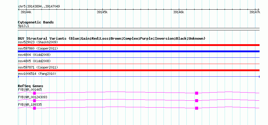 | | Variant Type | CNV insertion | | Copy Number | | | Allele State | | | Allele Origin | | | Probe Count | | | Validation Flag | | | Merged Status | M | | Merged Variants | | | Supporting Variants | essv3563903 | | Samples | HuRef | | Known Genes | FYB | | Method | Sequencing | | Analysis | | | Platform | Sanger Sequencing | | Comments | | | Reference | Pang_et_al_2010 | | Pubmed ID | 20482838 | | Accession Number(s) | esv1006514