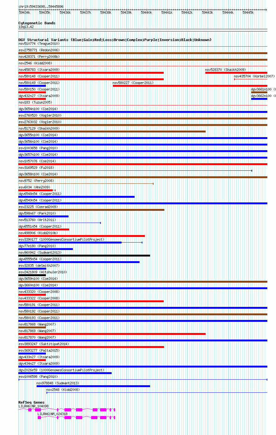 Variant DetailsVariant: esv1006598| Internal ID | 7071691 | | Landmark | | | Location Information | | | Cytoband | 19q13.42 | | Allele length | | Assembly | Allele length | | hg38 | 17405 | | hg19 | 17405 | | hg18 | 17405 |