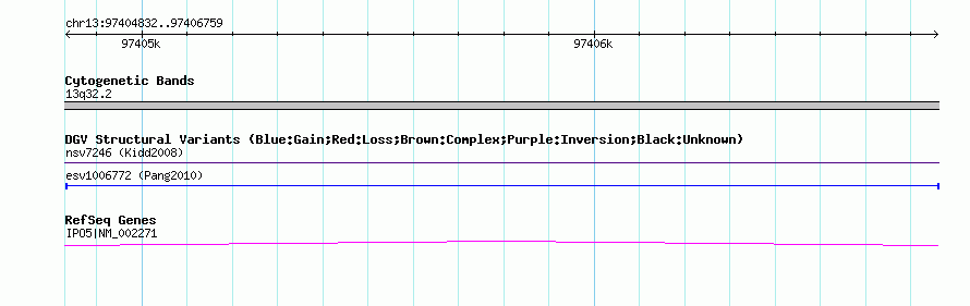 | | Variant Type | CNV insertion | | Copy Number | | | Allele State | | | Allele Origin | | | Probe Count | | | Validation Flag | | | Merged Status | M | | Merged Variants | | | Supporting Variants | essv3564487 | | Samples | HuRef | | Known Genes | IPO5 | | Method | Sequencing | | Analysis | | | Platform | Sanger Sequencing | | Comments | | | Reference | Pang_et_al_2010 | | Pubmed ID | 20482838 | | Accession Number(s) | esv1006772