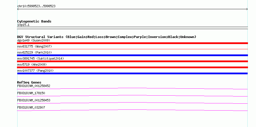 Variant DetailsVariant: esv1007377| Internal ID | 7072471 | | Landmark | | | Location Information | | | Cytoband | 10p15.1 | | Allele length | | Assembly | Allele length | | hg38 | 164 | | hg19 | 164 | | hg18 | 164 |