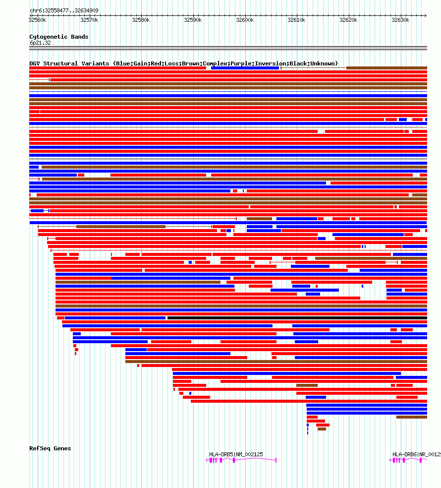 Variant DetailsVariant: esv1007504| Internal ID | 7072598 | | Landmark | | | Location Information | | | Cytoband | 6p21.32 | | Allele length | | Assembly | Allele length | | hg38 | 76433 | | hg19 | 76433 | | hg18 | 76433 |