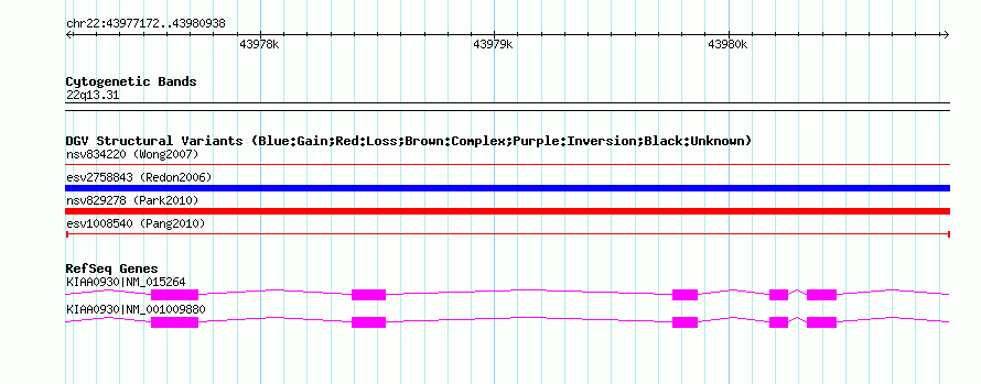 Variant DetailsVariant: esv1008540| Internal ID | 7073517 | | Landmark | | | Location Information | | | Cytoband | 22q13.31 | | Allele length | | Assembly | Allele length | | hg38 | 3767 | | hg19 | 3767 | | hg18 | 3767 |