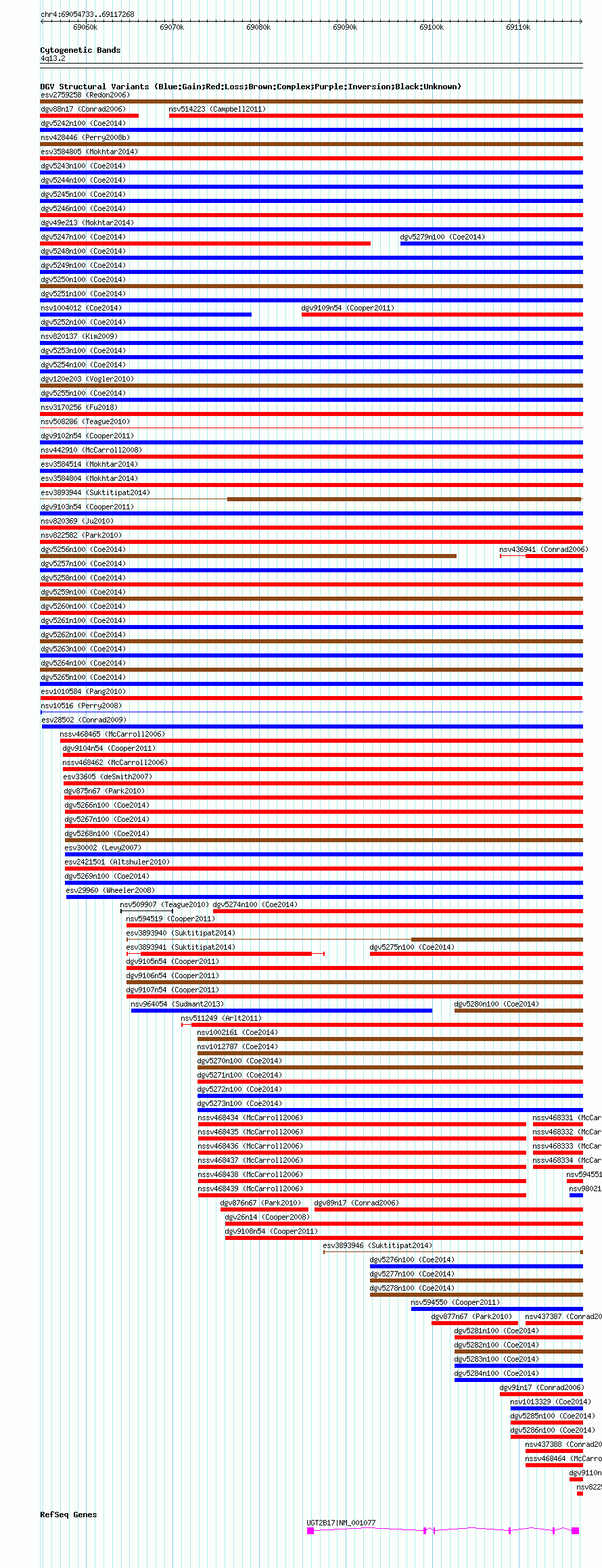 Variant DetailsVariant: esv1010584| Internal ID | 7074535 | | Landmark | | | Location Information | | | Cytoband | 4q13.2 | | Allele length | | Assembly | Allele length | | hg38 | 62536 | | hg19 | 62536 | | hg18 | 62536 |