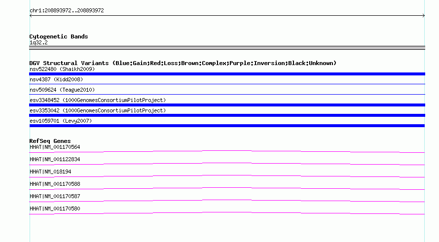 Variant DetailsVariant: esv1059701| Internal ID | 12222827 | | Landmark | | | Location Information | | | Cytoband | 1q32.2 | | Allele length | | Assembly | Allele length | | hg38 | 228 | | hg19 | 228 | | hg18 | 228 |