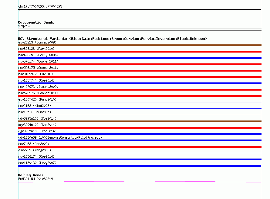 Variant DetailsVariant: esv1130130| Internal ID | 12293253 | | Landmark | | | Location Information | | | Cytoband | 17q25.3 | | Allele length | | Assembly | Allele length | | hg38 | 68 | | hg19 | 68 | | hg18 | 68 |