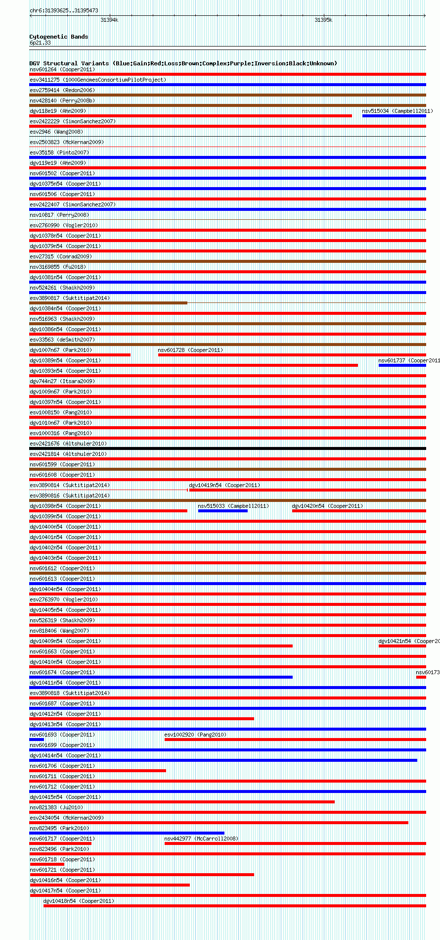 Variant DetailsVariant: esv11661 | Internal ID | 11375580 | | Landmark | | | Location Information | | | Cytoband | 6p21.33 | | Allele length | | Assembly | Allele length | | hg38 | 1849 | | hg19 | 1849 | | hg18 | 1849 |