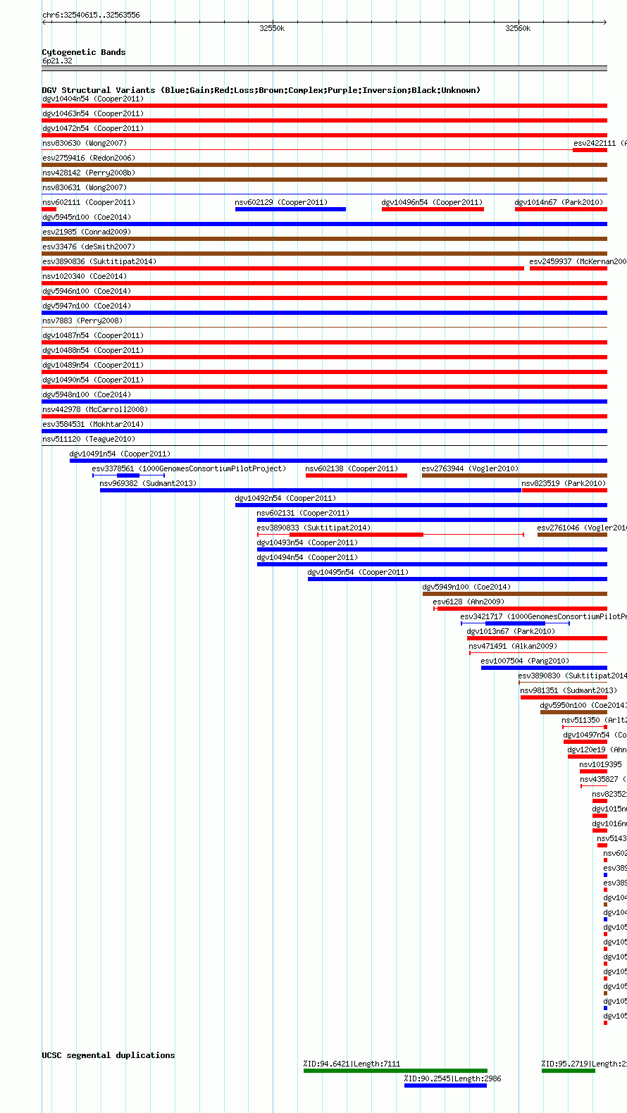 | Variant DetailsVariant: esv11811| Internal ID | 11029045 |  | Landmark |  |  | Location Information |  |  | Cytoband | 6p21.32 |  | Allele length | | Assembly | Allele length |  | hg38 | 22942 |  | hg19 | 22942 |  | hg18 | 22942 |