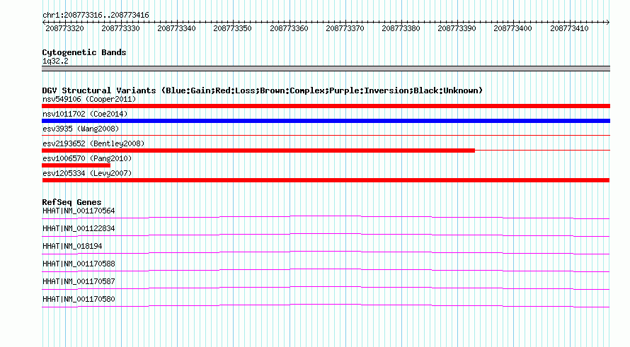 | | Variant Type | CNV deletion | | Copy Number | | | Allele State | | | Allele Origin | | | Probe Count | | | Validation Flag | | | Merged Status | M | | Merged Variants | | | Supporting Variants | essv3690204 | | Samples | HuRef | | Known Genes | HHAT | | Method | Sequencing | | Analysis | | | Platform | Sanger Sequencing | | Comments | | | Reference | Levy_et_al_2007 | | Pubmed ID | 17803354 | | Accession Number(s) | esv1205334