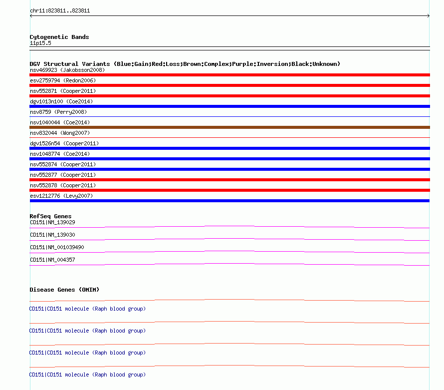 Variant DetailsVariant: esv1212776| Internal ID | 12375900 | | Landmark | | | Location Information | | | Cytoband | 11p15.5 | | Allele length | | Assembly | Allele length | | hg38 | 50 | | hg19 | 50 | | hg18 | 50 |