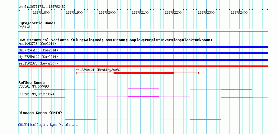 Variant DetailsVariant: esv1302373| Internal ID | 12465495 | | Landmark | | | Location Information | | | Cytoband | 9q34.3 | | Allele length | | Assembly | Allele length | | hg38 | 755 | | hg19 | 755 | | hg18 | 755 |