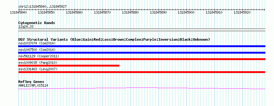 Variant DetailsVariant: esv1331463| Internal ID | 12494585 | | Landmark | | | Location Information | | | Cytoband | 12q24.33 | | Allele length | | Assembly | Allele length | | hg38 | 88 | | hg19 | 88 | | hg18 | 88 |