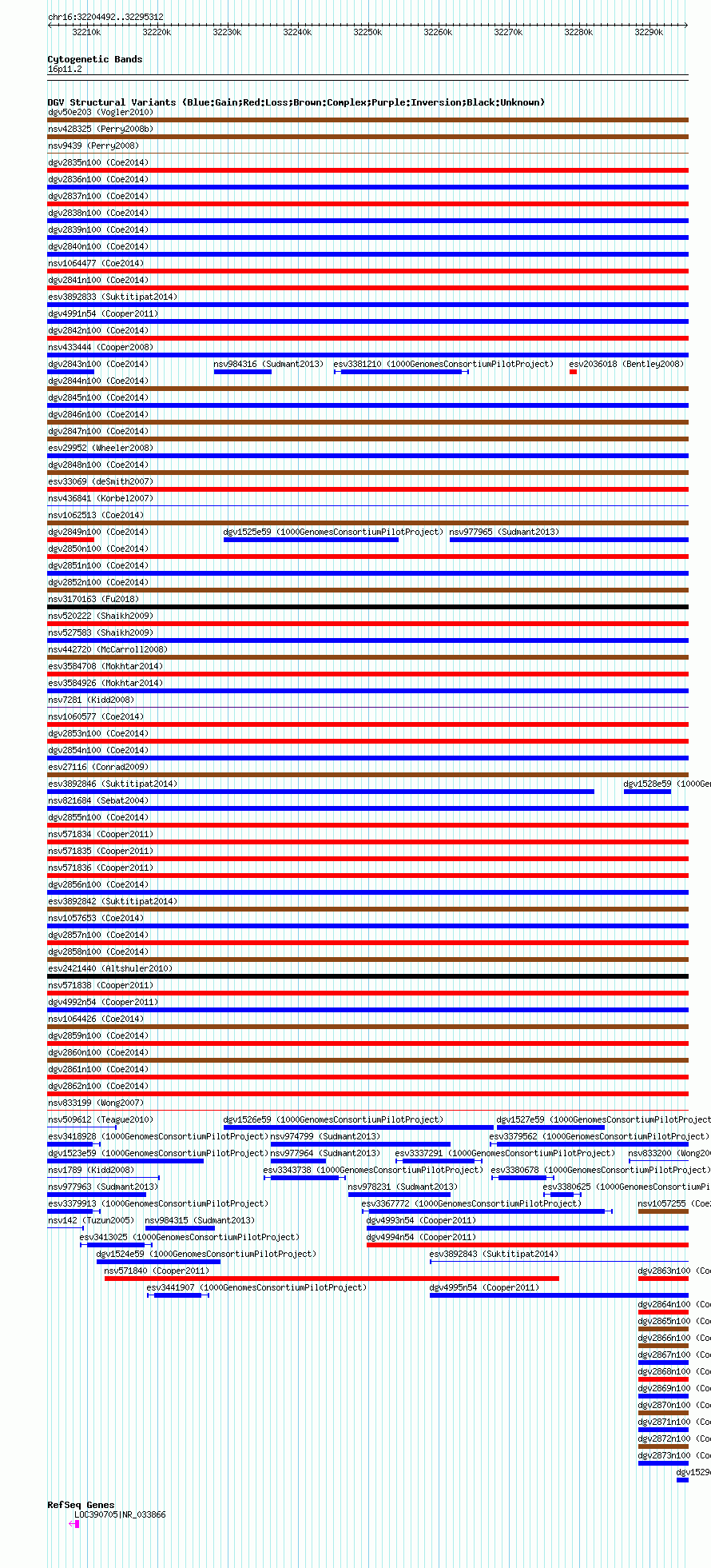 Variant DetailsVariant: esv13731 | Internal ID | 11377650 | | Landmark | | | Location Information | | | Cytoband | 16p11.2 | | Allele length | | Assembly | Allele length | | hg38 | 90821 | | hg19 | 90821 | | hg18 | 90821 |