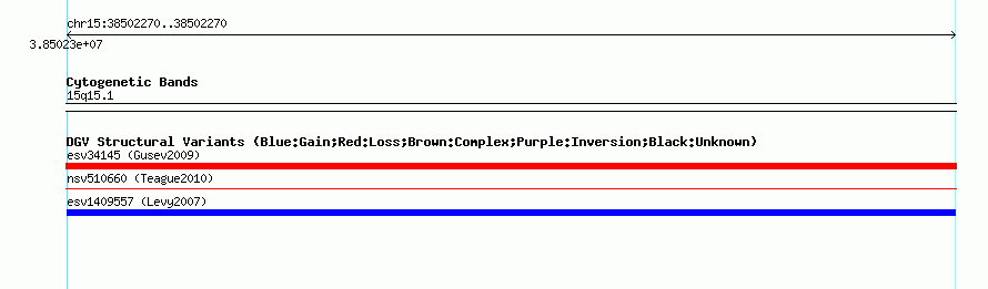Variant DetailsVariant: esv1409557| Internal ID | 12572679 | | Landmark | | | Location Information | | | Cytoband | 15q15.1 | | Allele length | | Assembly | Allele length | | hg38 | 182 | | hg19 | 182 | | hg18 | 182 |