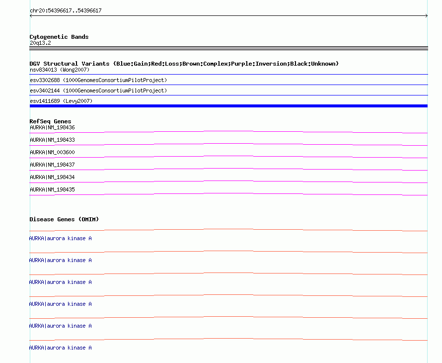 Variant DetailsVariant: esv1411689| Internal ID | 12574811 | | Landmark | | | Location Information | | | Cytoband | 20q13.2 | | Allele length | | Assembly | Allele length | | hg38 | 61 | | hg19 | 61 | | hg18 | 61 |