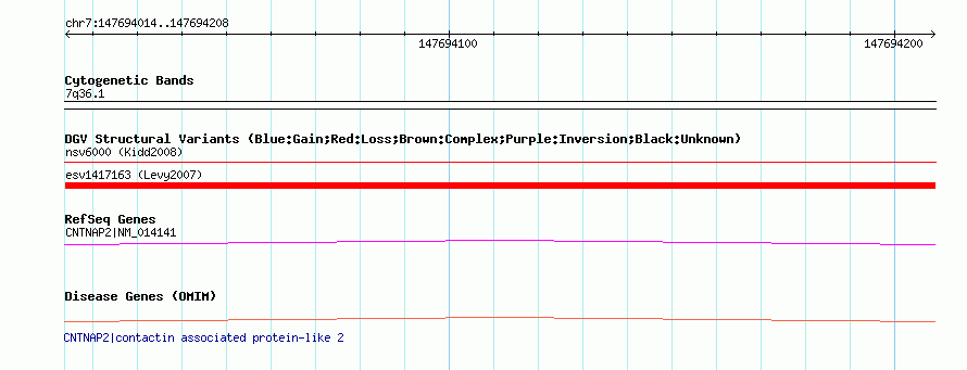 Variant DetailsVariant: esv1417163| Internal ID | 12580285 | | Landmark | | | Location Information | | | Cytoband | 7q36.1 | | Allele length | | Assembly | Allele length | | hg38 | 195 | | hg19 | 195 | | hg18 | 195 |