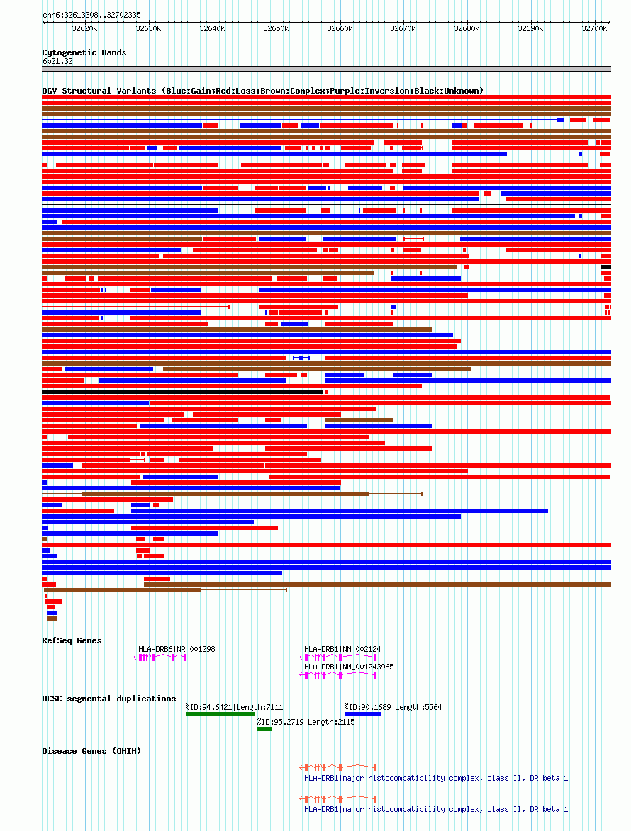 | Variant DetailsVariant: esv14415| Internal ID | 11031649 |  | Landmark |  |  | Location Information |  |  | Cytoband | 6p21.32 |  | Allele length | | Assembly | Allele length |  | hg38 | 89028 |  | hg19 | 89028 |  | hg18 | 89028 |