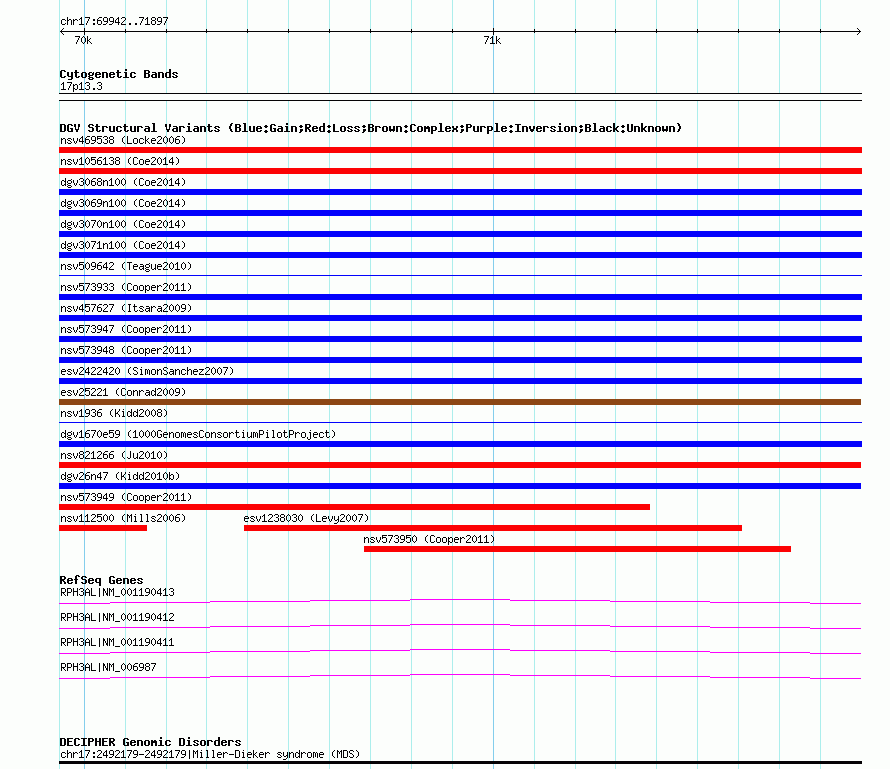 Variant DetailsVariant: esv15491 | Internal ID | 11379410 | | Landmark | | | Location Information | | | Cytoband | 17p13.3 | | Allele length | | Assembly | Allele length | | hg38 | 1956 | | hg19 | 1956 | | hg18 | 1956 |
