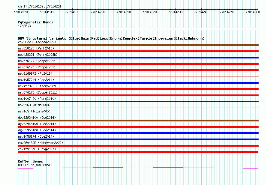 Variant DetailsVariant: esv1551656| Internal ID | 12714777 | | Landmark | | | Location Information | | | Cytoband | 17q25.3 | | Allele length | | Assembly | Allele length | | hg38 | 93 | | hg19 | 93 | | hg18 | 93 |