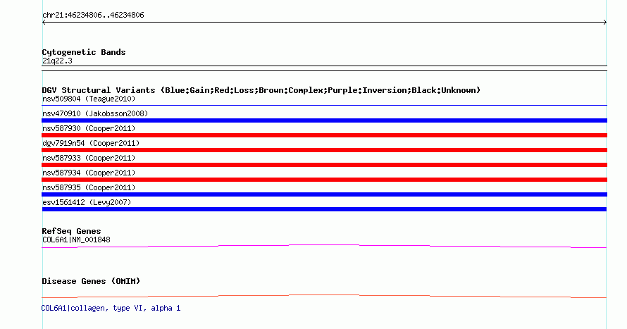 | | Variant Type | CNV insertion | | Copy Number | | | Allele State | | | Allele Origin | | | Probe Count | | | Validation Flag | | | Merged Status | M | | Merged Variants | | | Supporting Variants | essv3776703 | | Samples | HuRef | | Known Genes | COL6A1 | | Method | Sequencing | | Analysis | | | Platform | Sanger Sequencing | | Comments | | | Reference | Levy_et_al_2007 | | Pubmed ID | 17803354 | | Accession Number(s) | esv1561412