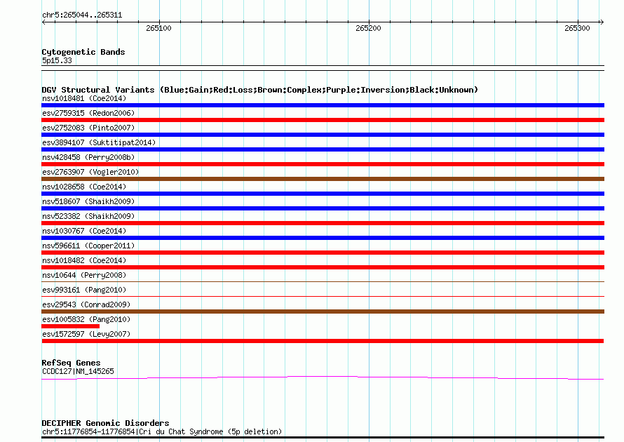 Variant DetailsVariant: esv1572597| Internal ID | 12735718 | | Landmark | | | Location Information | | | Cytoband | 5p15.33 | | Allele length | | Assembly | Allele length | | hg38 | 268 | | hg19 | 268 | | hg18 | 268 |
