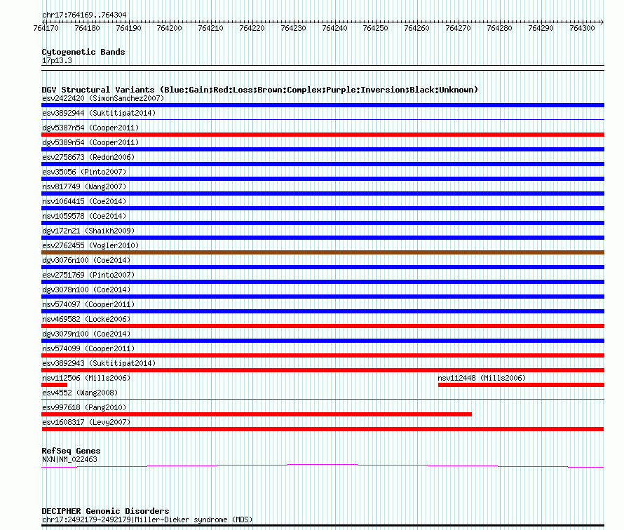 Variant DetailsVariant: esv1608317| Internal ID | 12771437 | | Landmark | | | Location Information | | | Cytoband | 17p13.3 | | Allele length | | Assembly | Allele length | | hg38 | 136 | | hg19 | 136 | | hg18 | 136 |