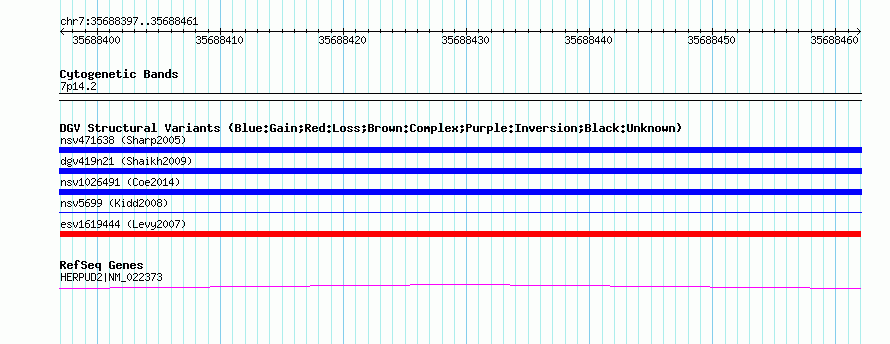 Variant DetailsVariant: esv1619444| Internal ID | 12782564 | | Landmark | | | Location Information | | | Cytoband | 7p14.2 | | Allele length | | Assembly | Allele length | | hg38 | 65 | | hg19 | 65 | | hg18 | 65 |