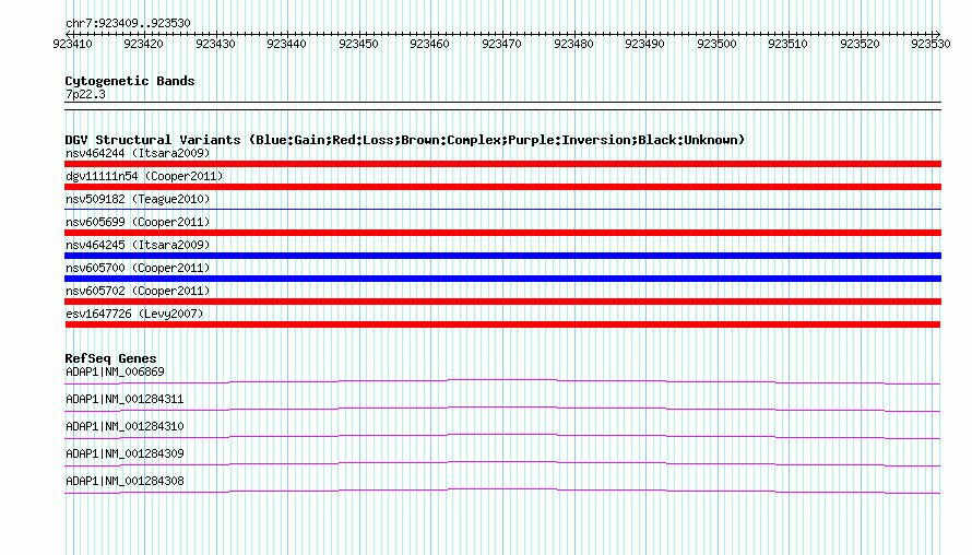 Variant DetailsVariant: esv1647726| Internal ID | 12810846 | | Landmark | | | Location Information | | | Cytoband | 7p22.3 | | Allele length | | Assembly | Allele length | | hg38 | 122 | | hg19 | 122 | | hg18 | 122 |