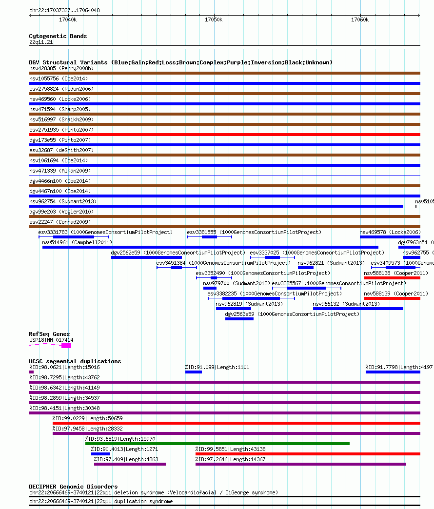 Variant DetailsVariant: esv16603 Internal ID | 11033837 | Landmark | | Location Information | | Cytoband | 22q11.21 | Allele length | Assembly | Allele length | hg38 | 26722 | hg19 | 26722 | hg18 | 26722 |