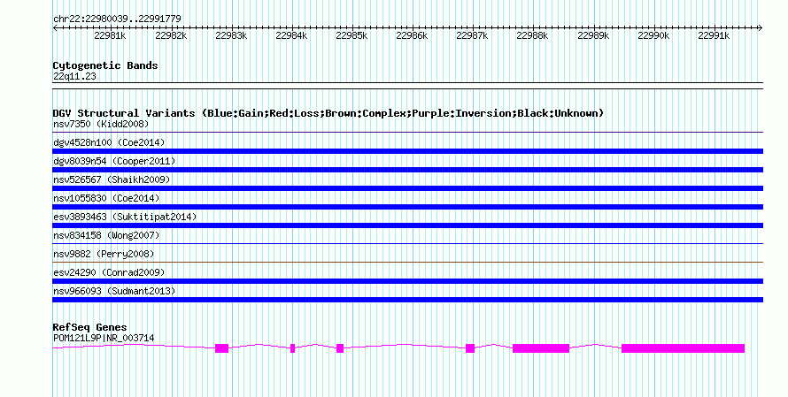 Variant DetailsVariant: esv16656 | Internal ID | 11380575 | | Landmark | | | Location Information | | | Cytoband | 22q11.23 | | Allele length | | Assembly | Allele length | | hg38 | 11741 | | hg19 | 11741 | | hg18 | 11741 |