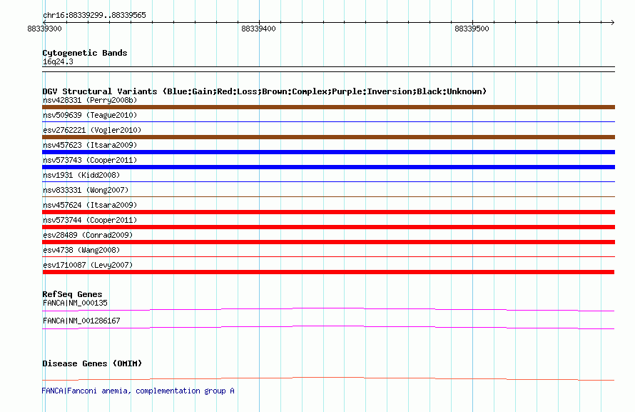 Variant DetailsVariant: esv1710087| Internal ID | 12873205 | | Landmark | | | Location Information | | | Cytoband | 16q24.3 | | Allele length | | Assembly | Allele length | | hg38 | 267 | | hg19 | 267 | | hg18 | 267 |