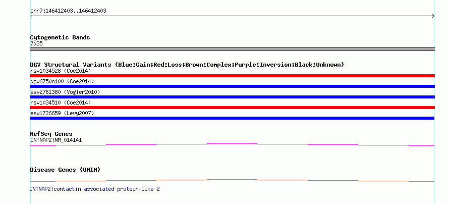 | | Variant Type | CNV insertion | | Copy Number | | | Allele State | | | Allele Origin | | | Probe Count | | | Validation Flag | | | Merged Status | M | | Merged Variants | | | Supporting Variants | essv4346305 | | Samples | HuRef | | Known Genes | CNTNAP2 | | Method | Sequencing | | Analysis | | | Platform | Sanger Sequencing | | Comments | | | Reference | Levy_et_al_2007 | | Pubmed ID | 17803354 | | Accession Number(s) | esv1726659