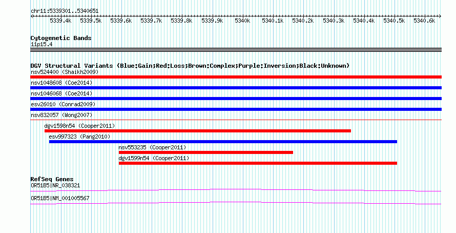 Variant DetailsVariant: esv18784 | Internal ID | 11036018 | | Landmark | | | Location Information | | | Cytoband | 11p15.4 | | Allele length | | Assembly | Allele length | | hg38 | 1351 | | hg19 | 1351 | | hg18 | 1351 |