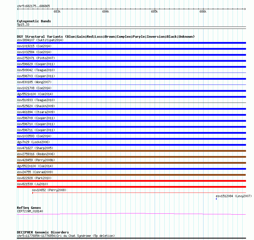 Variant DetailsVariant: esv19022 | Internal ID | 11382941 | | Landmark | | | Location Information | | | Cytoband | 5p15.33 | | Allele length | | Assembly | Allele length | | hg38 | 4691 | | hg19 | 4691 | | hg18 | 4691 |