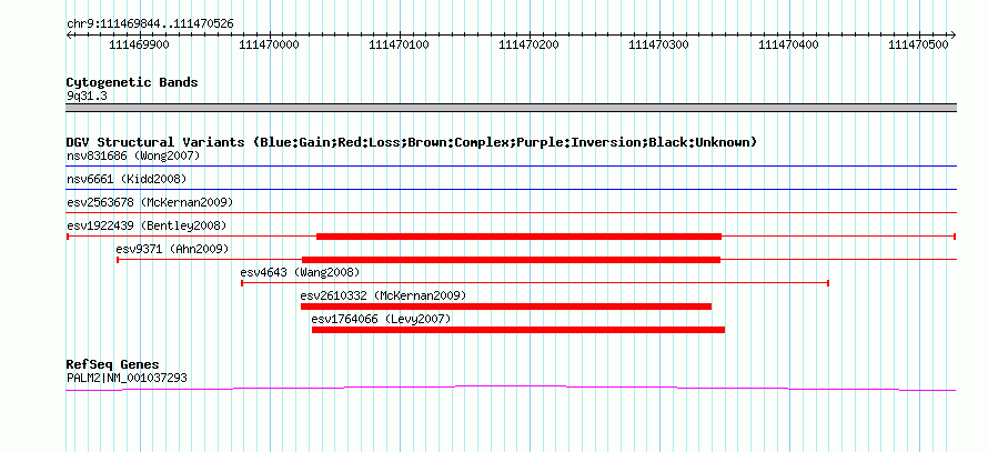 | Analysis | Hierarchical clustering of anomalous readpairs was used to identify groupings of five or more readpairs that had a similar size and position. Read pairs were defined as anomalous if they had high-confidence alignments of each individual read that nevertheless were either incorrectly oriented or implied an insert size of at least 3 standard deviations outside the sample median. |