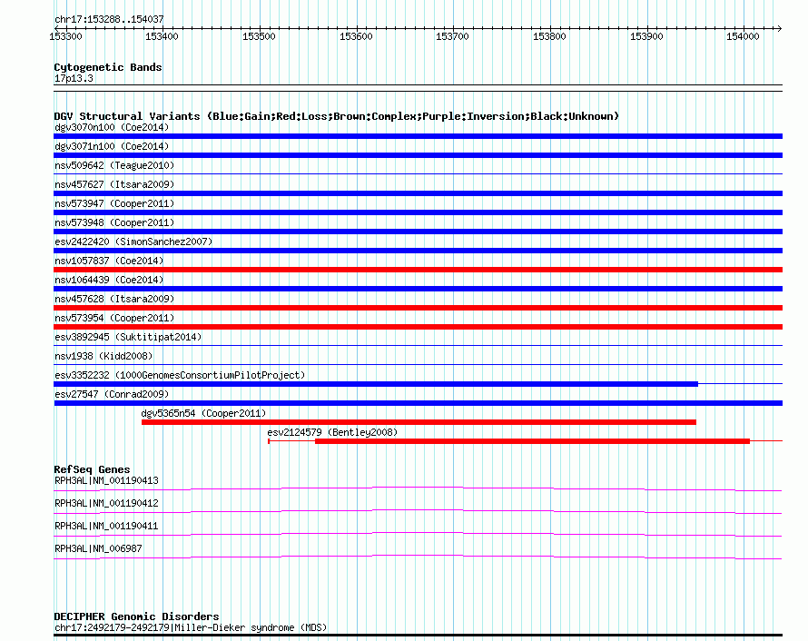 Variant DetailsVariant: esv19446 | Internal ID | 11383365 | | Landmark | | | Location Information | | | Cytoband | 17p13.3 | | Allele length | | Assembly | Allele length | | hg38 | 750 | | hg19 | 750 | | hg18 | 750 |
