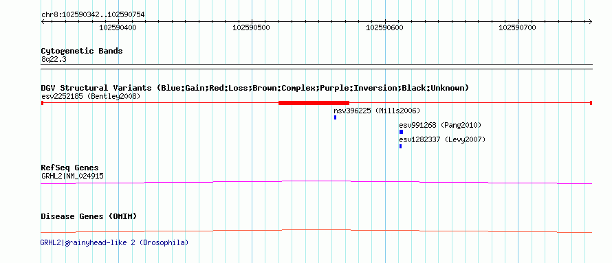 | Analysis | Hierarchical clustering of anomalous readpairs was used to identify groupings of five or more readpairs that had a similar size and position. Read pairs were defined as anomalous if they had high-confidence alignments of each individual read that nevertheless were either incorrectly oriented or implied an insert size of at least 3 standard deviations outside the sample median. |